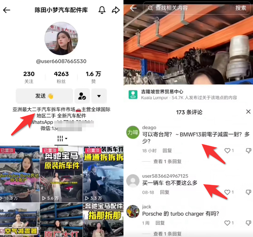 TikTok的视频特性让汽配企业能够360度展示产品细节: